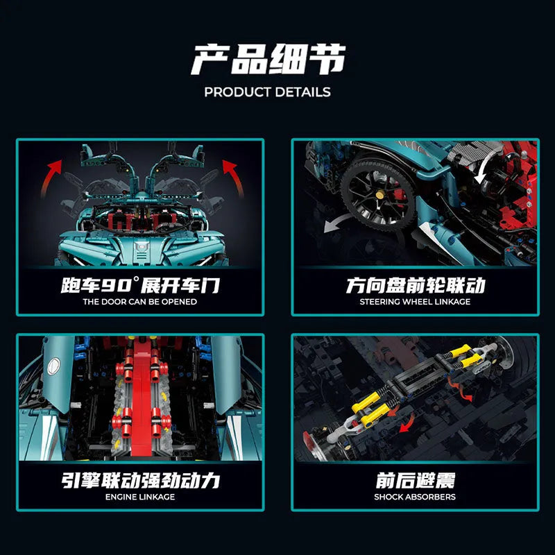 This advanced 1/8 scale building block set features precision-engineered components including plated body parts, functional suspension system, operational transmission, detailed motor assembly, and responsive steering mechanism—delivering an authentic engineering experience for enthusiasts seeking technical authenticity.