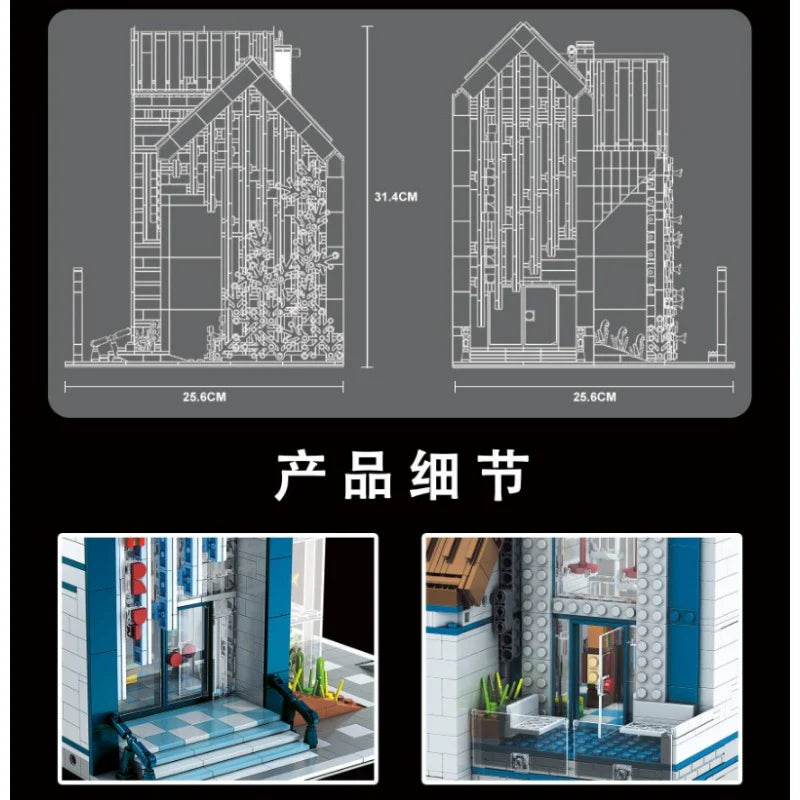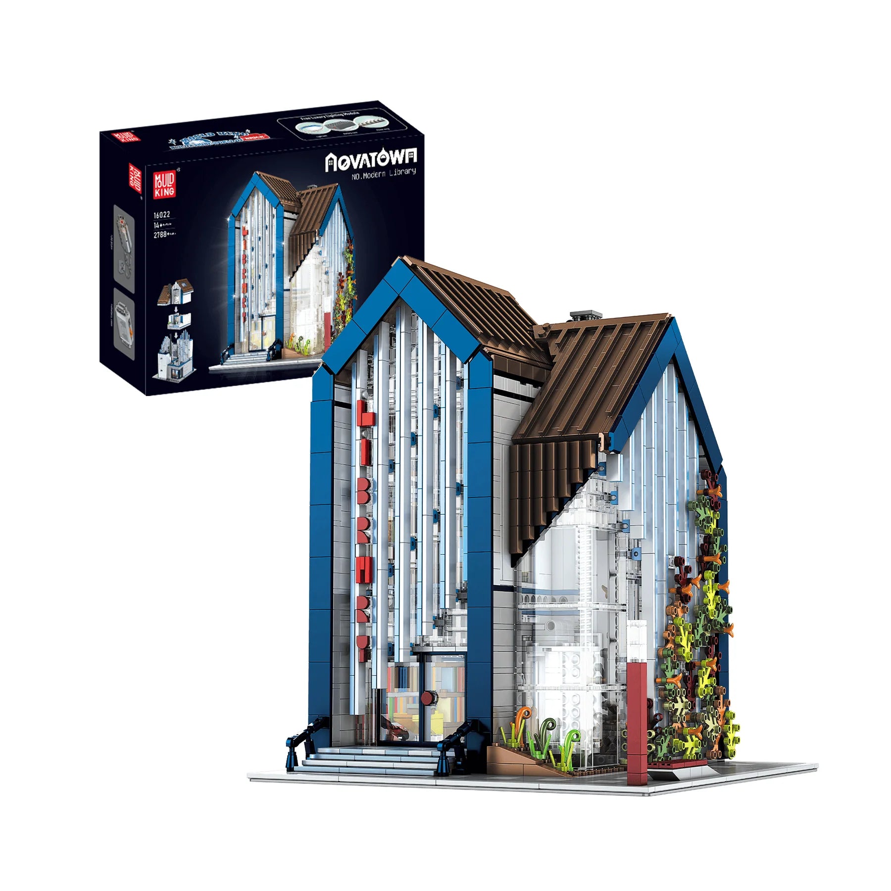 Mould King Street View 2,788 piece Street View Modern Library Building Block Set. Includes LED Lighting and motor.