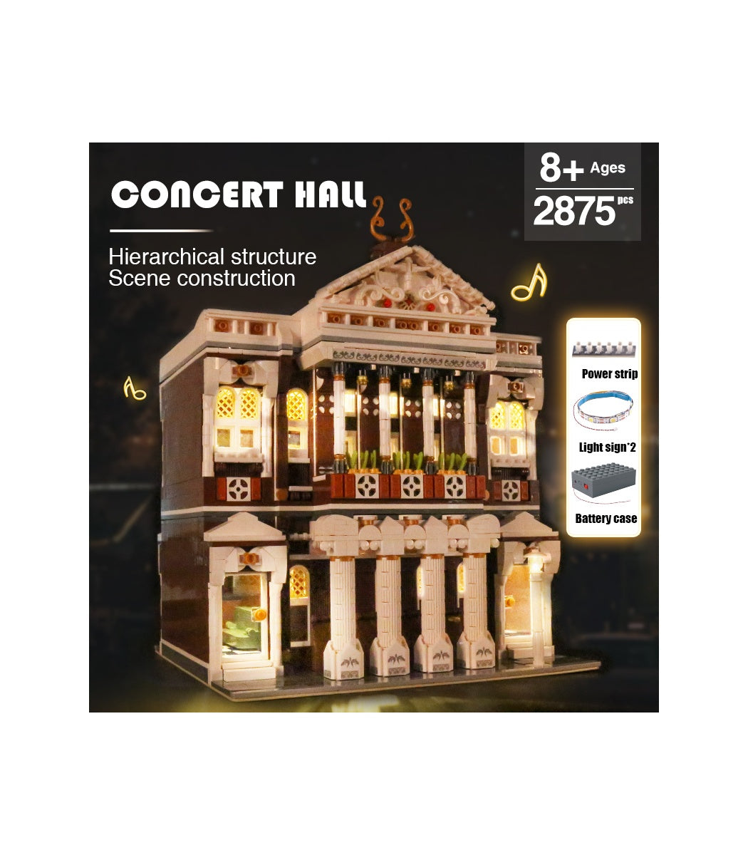 Mould King Street View 2,875 piece Street View Concert Hall Building Block Set. Includes LED Lighting.