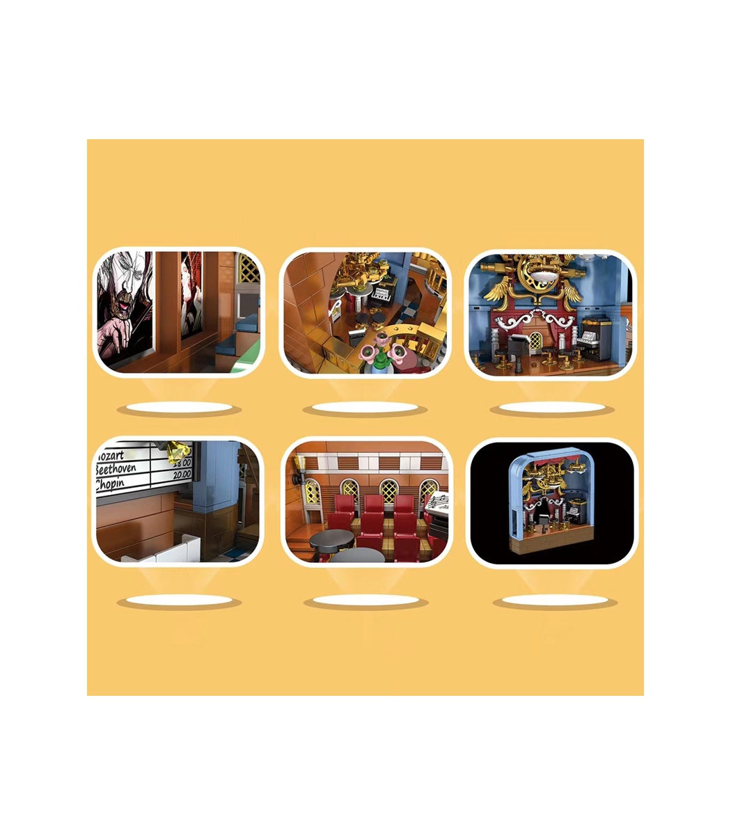 Experience the sophistication of architectural building with the Mould King 16032 Concert Hall, a meticulously detailed structure that captures the elegance of a performing arts venue. This layered construction set features an intricately designed ground floor showcasing a concert hall with a professional-grade stage, while the upper level presents a contemporary duplex layout complete with a lounge area and rooftop terrace. The included LED lighting system—comprising a power strip, dual light panels, and battery box—illuminates the interior spaces to replicate authentic ambient lighting. Every room reflects refined craftsmanship with carefully curated decorative elements, making this an impressive display piece for collectors and architecture enthusiasts alike.