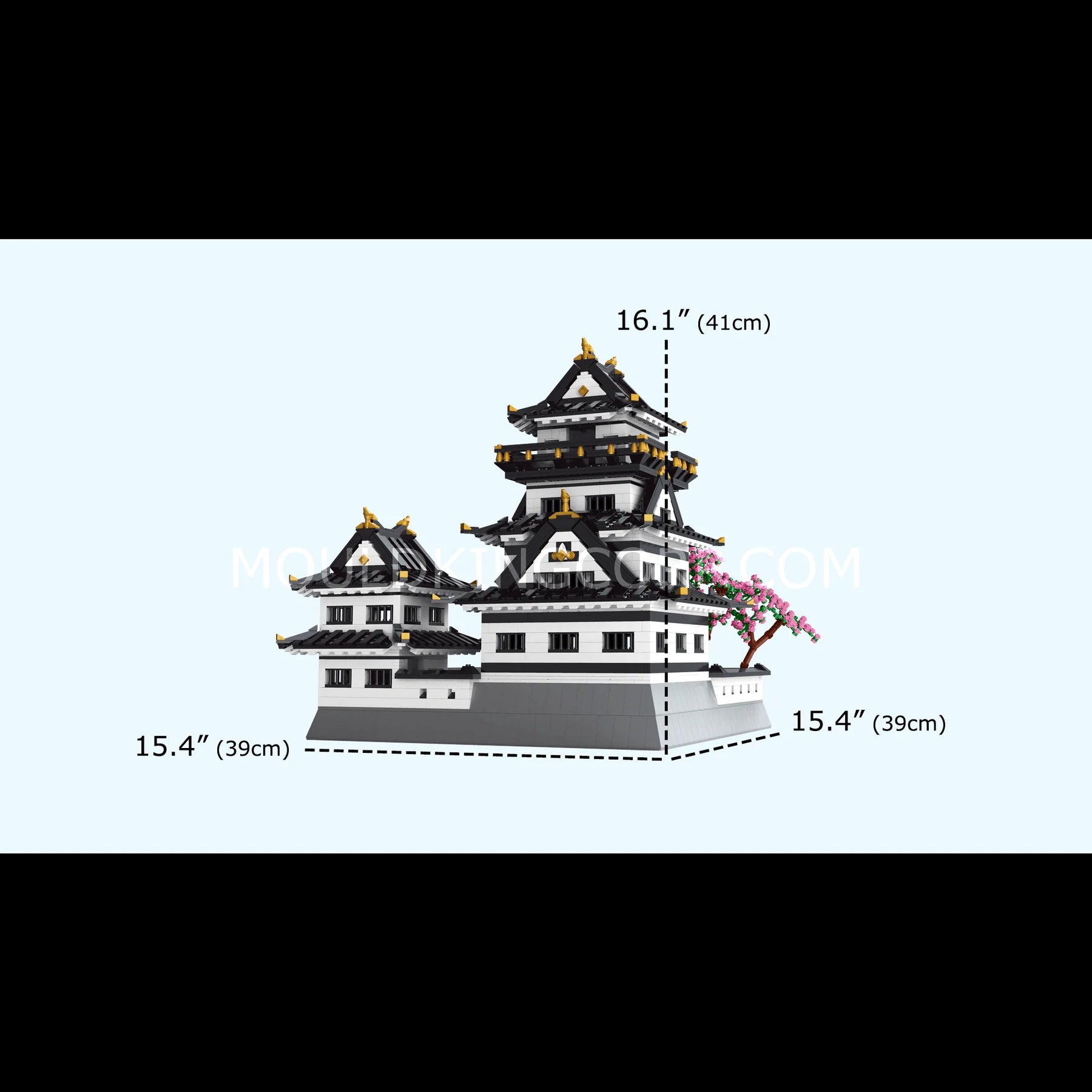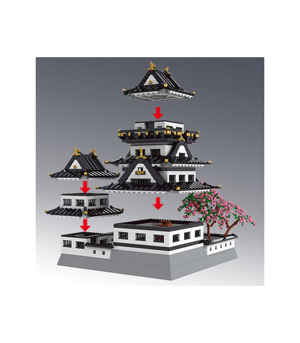 Discover the architectural magnificence of Himeji-jo Castle through the Mould King 22006 building set. This comprehensive model features over 3,086 precision-engineered pieces that faithfully recreate Japan's most celebrated fortress, renowned for its distinctive white exterior and gracefully tiered rooflines. The set captures authentic details including multi-layered defensive structures, ornamental golden ridge accents, and intricately designed wooden gates flanked by imposing stone fortifications. Removable roof sections reveal meticulously crafted interior spaces—traditional tatami chambers and a central courtyard—offering insight into feudal-era living quarters. A complementary cherry blossom tree enhances the historical ambiance. Standing 34.5 cm in height and 13.6 cm in length, this model serves as both an engaging construction challenge and an impressive display piece, appealing to architecture scholars, history enthusiasts, and serious model builders seeking an authentic representation of Japanese castle engineering and aesthetic refinement.