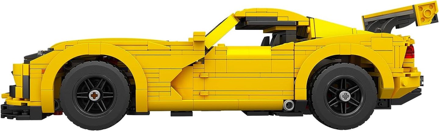 Construct this legendary American performance machine with the Mould King 10046S Dodge Viper building set. This precision model faithfully reproduces the vehicle's commanding presence through its striking dual-tone livery, prominent aerodynamic wing, and sculpted bodywork that defines the marque. Explore functional elements including hinged engine and trunk compartments that showcase meticulously rendered mechanical details. The cockpit features authentic instrumentation with an operational steering mechanism and sport-oriented controls. A sophisticated assembly experience that appeals to automotive aficionados and serious collectors seeking an authoritative display piece.