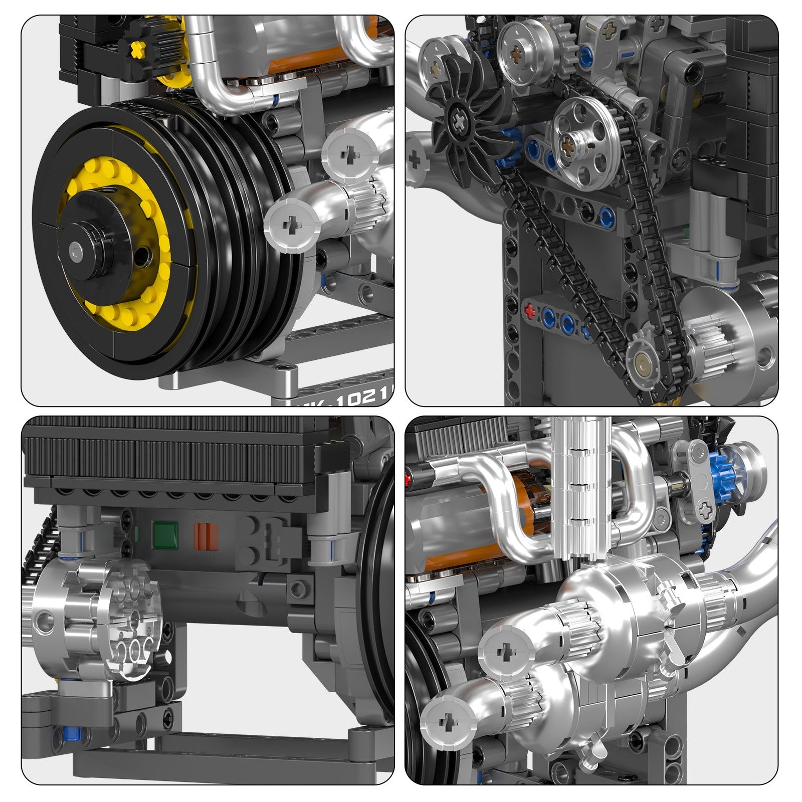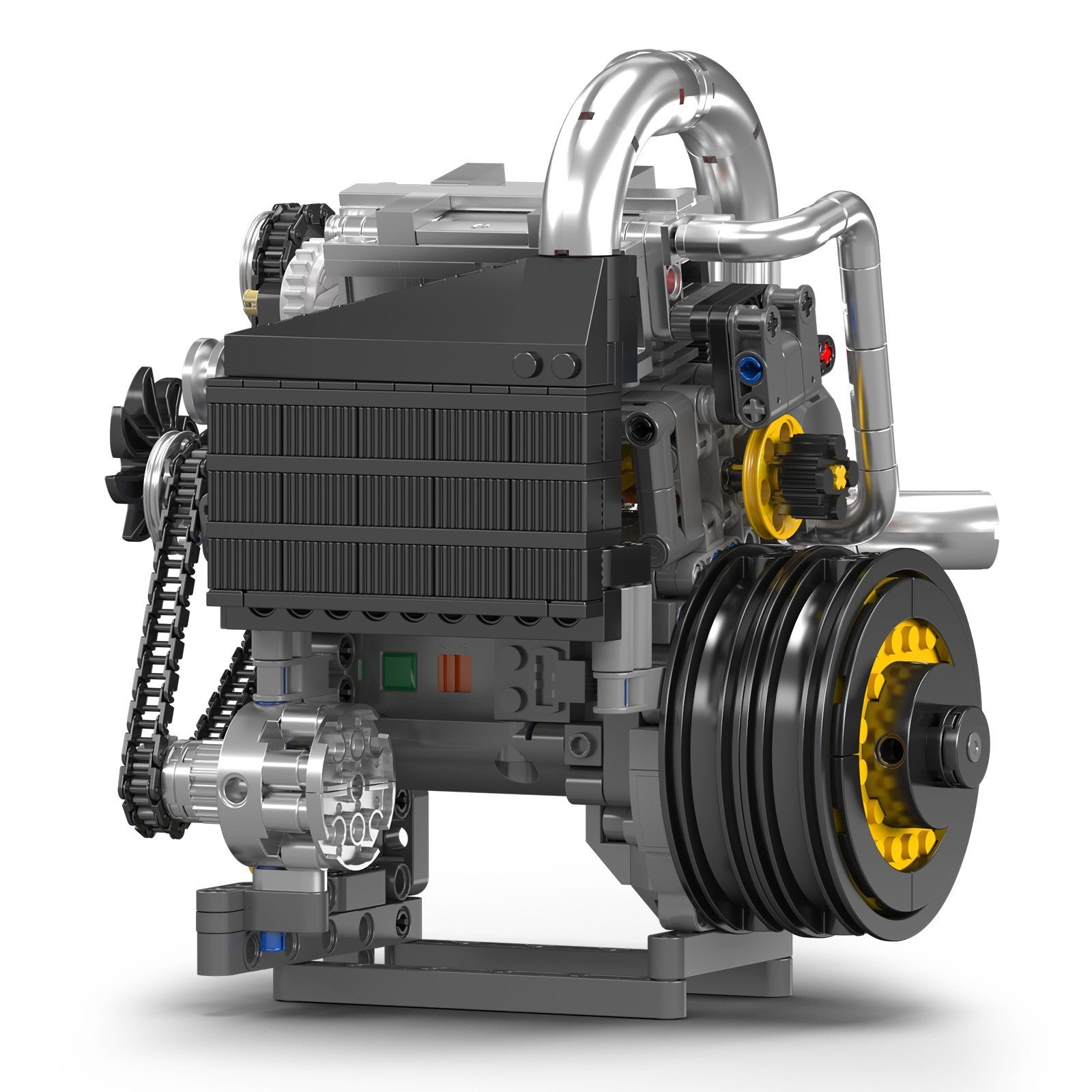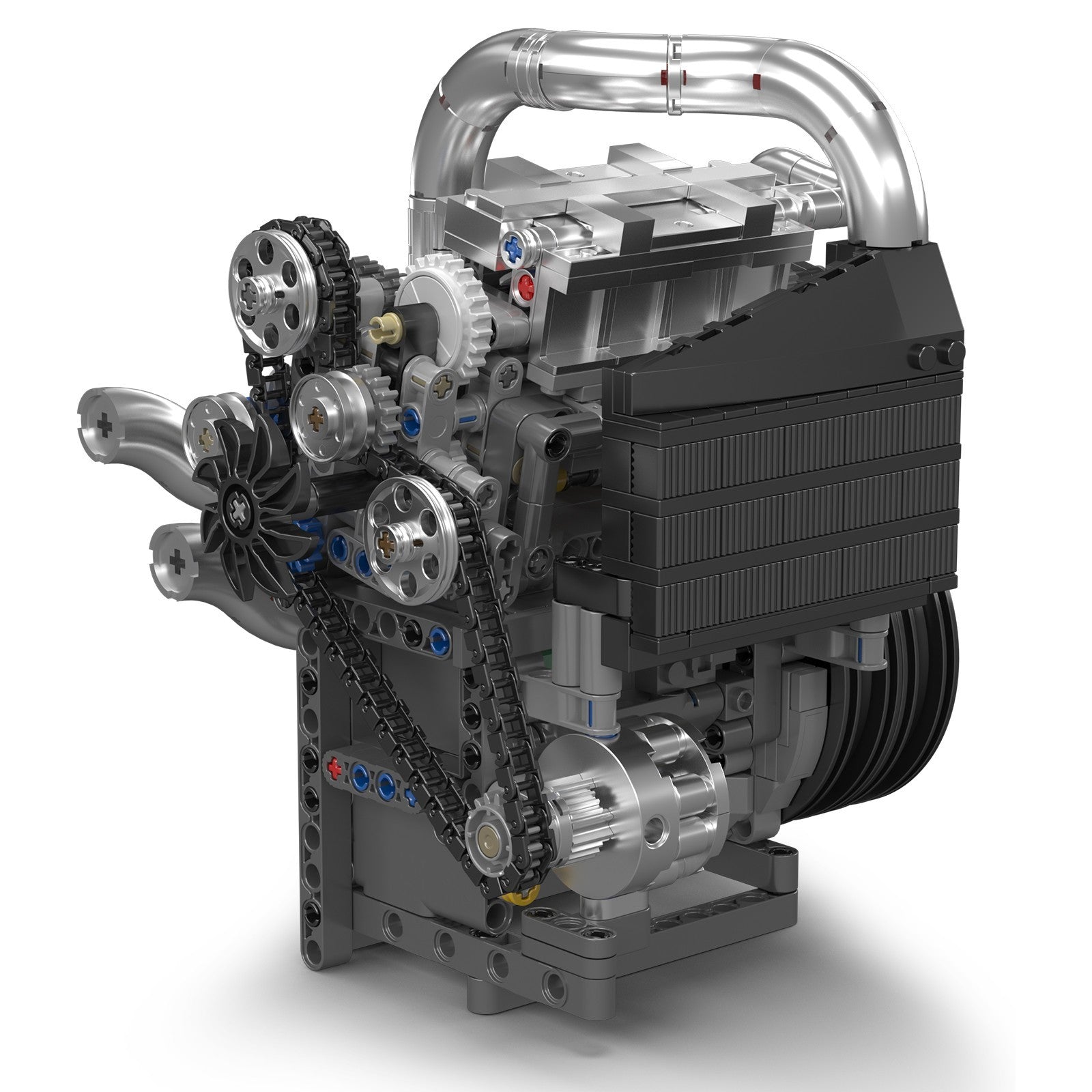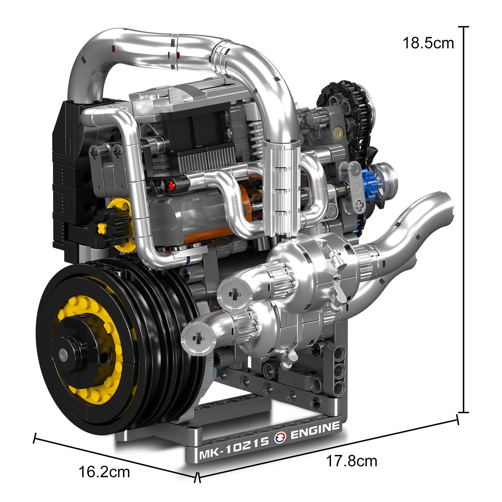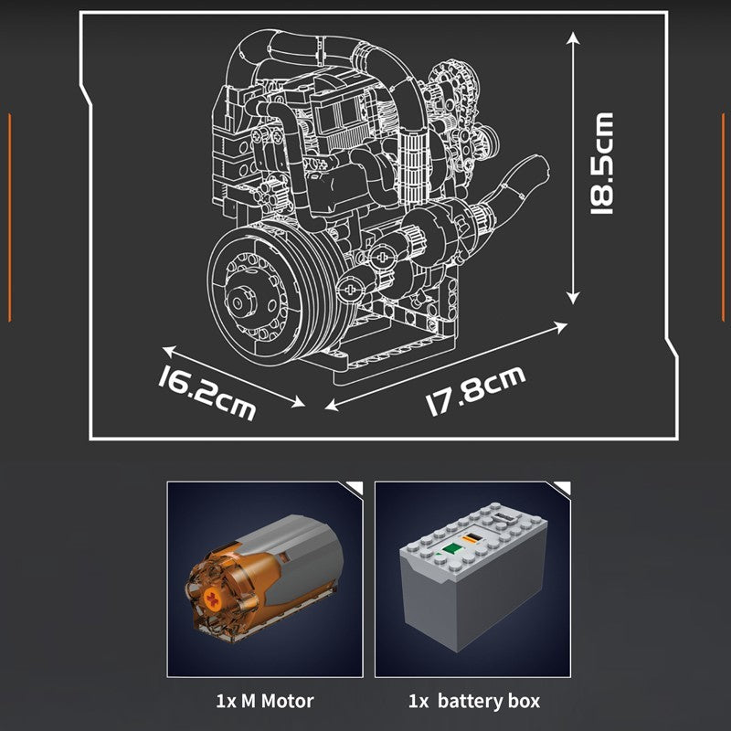 Experience authentic mechanical engineering with the Mould King 10215 Koenig Supercar Motorized Engine. This 739-piece construction set delivers a functional replica of advanced automotive powerplant design, measuring 18 cm and featuring motorized components including operational pistons, timing chain, gear mechanisms, and crankshaft. The included battery-powered motor brings the assembly to life with dynamic motion. Chrome accents enhance the model's visual appeal, while precision details capture the essence of turbocharging systems, radiator construction, and exhaust architecture. Engineered for discerning enthusiasts who demand both mechanical authenticity and working functionality in their display pieces.