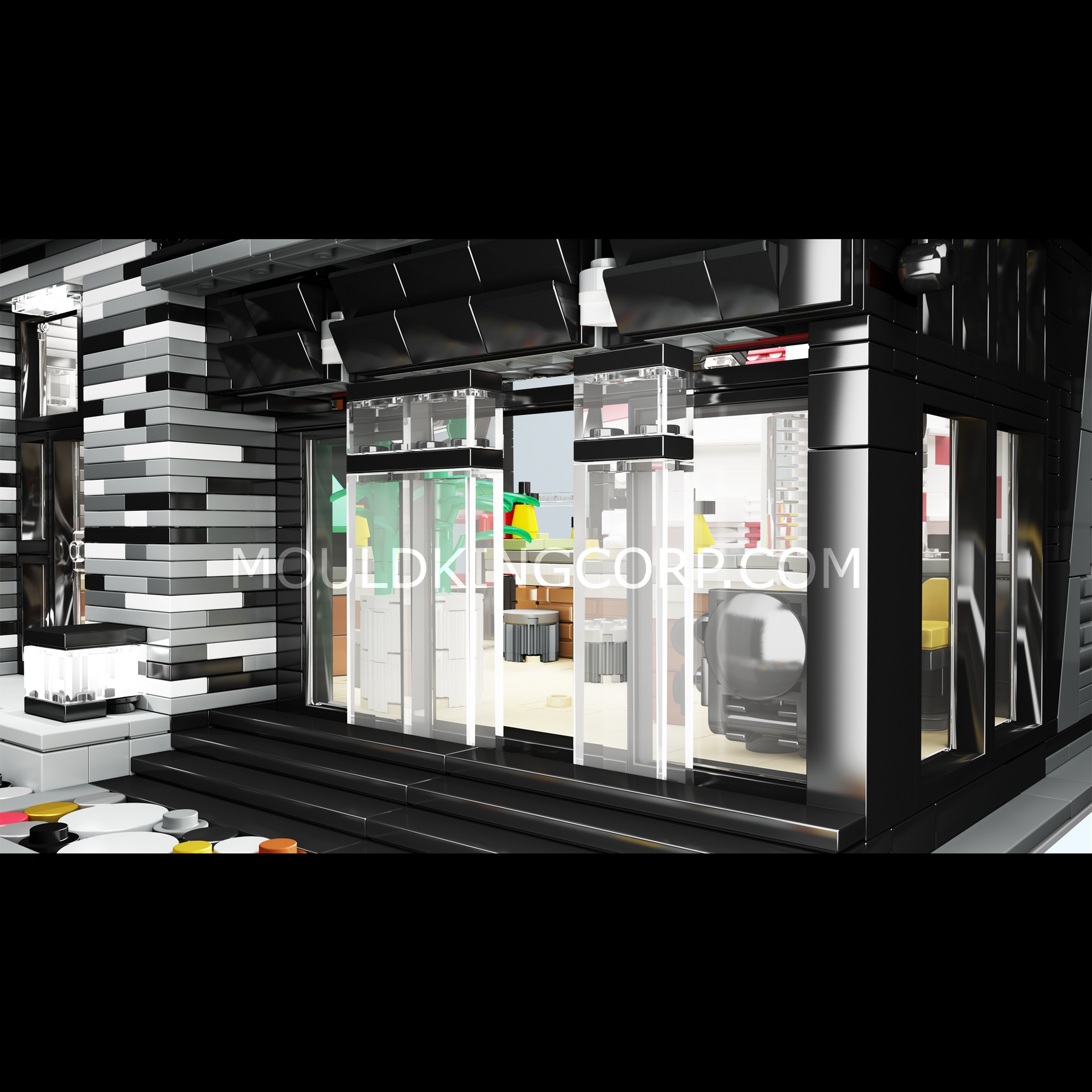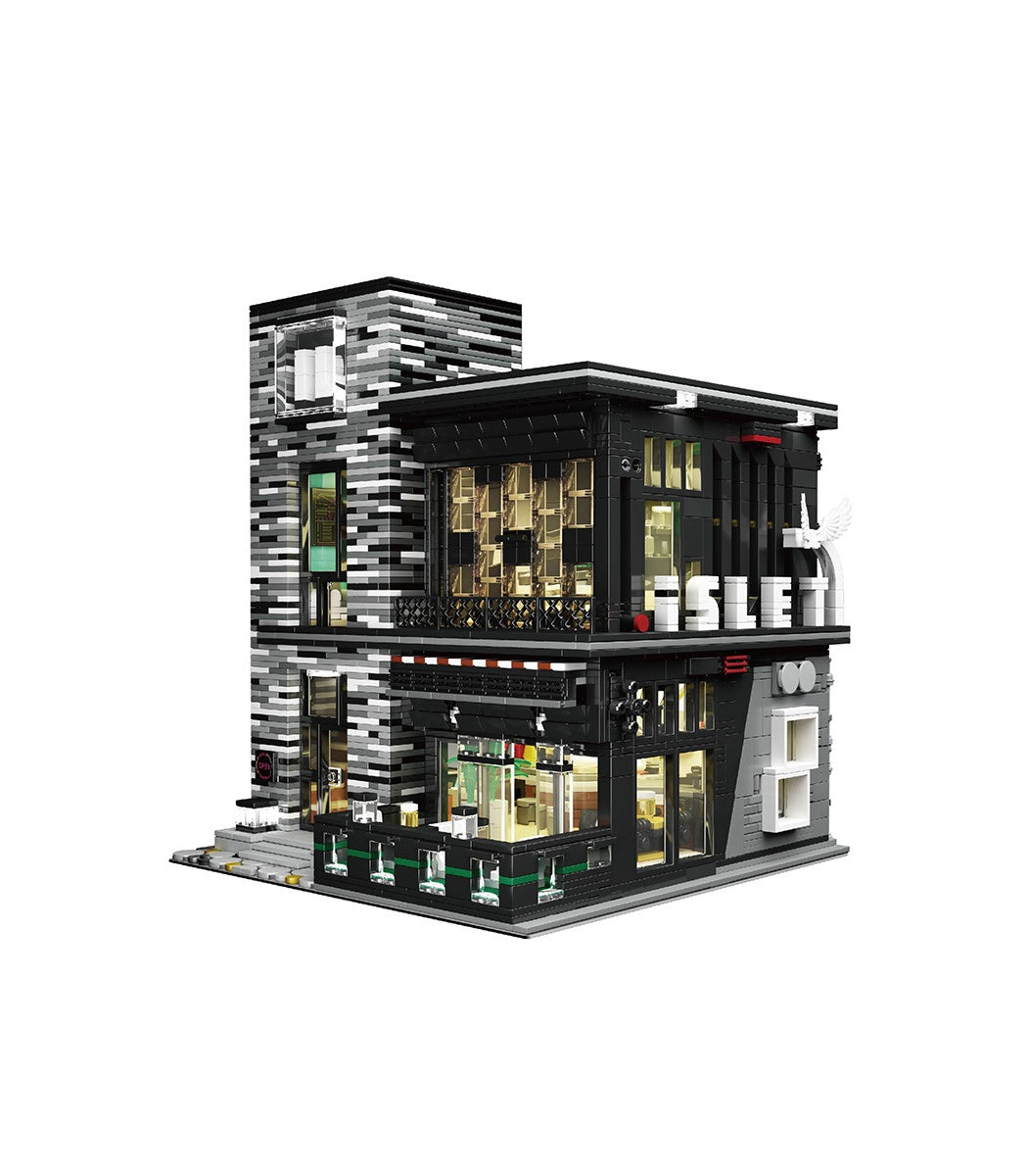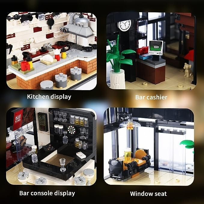 Mould King Street View 3,992 piece Street View Islet Bar and Restaurant MOC Building Block Set. Includes LED Lighting.