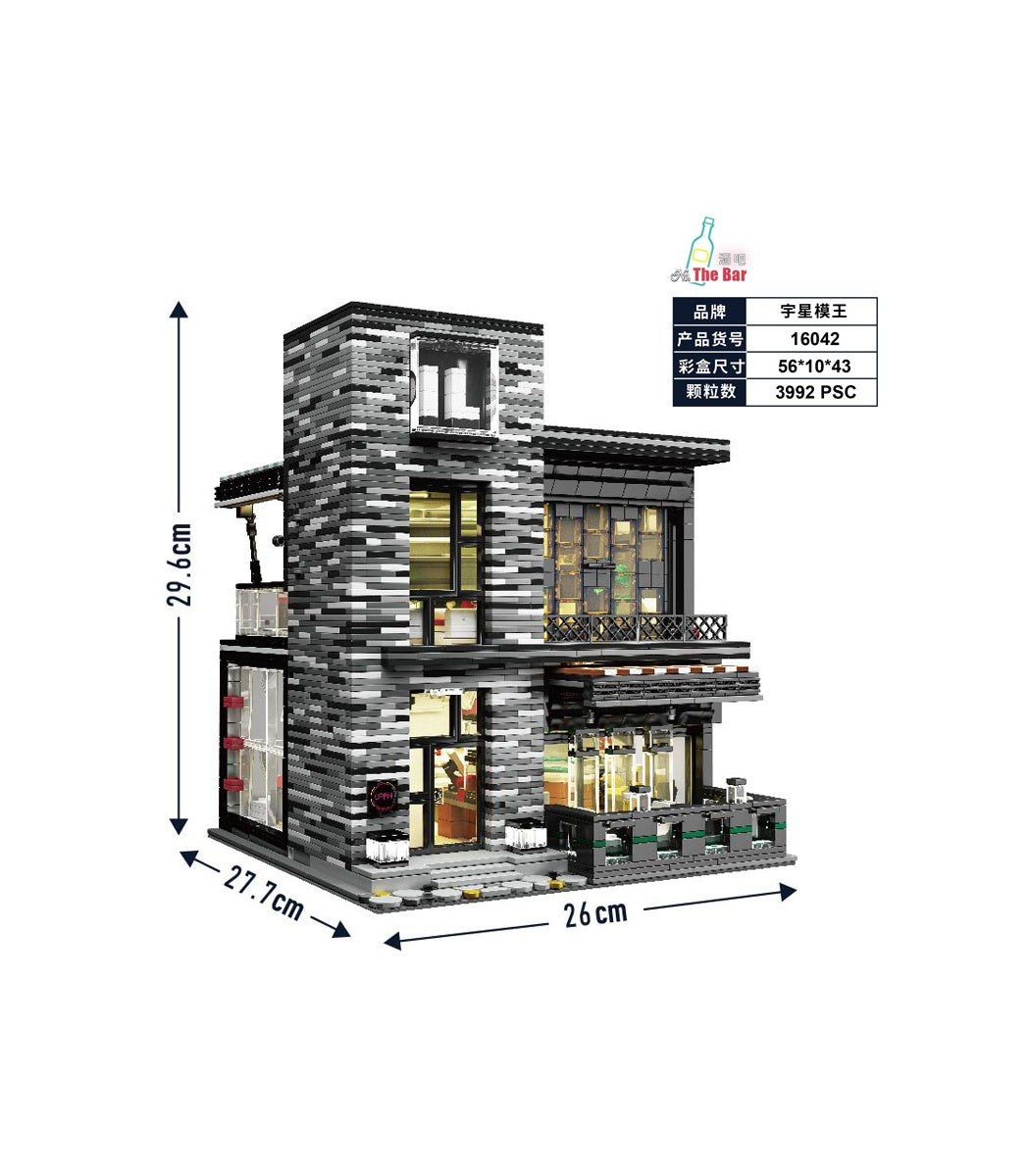 Discover the Mould King 16042 The Bar Islet Pub and Restaurant, a sophisticated 3,992-piece architectural model featuring a dual-level design with meticulously detailed interiors. This set showcases an array of authentic bar furnishings, dining configurations, and kitchen elements that reward careful exploration. Integrated LED ambient lighting and concealed light strips create an inviting atmosphere, with wiring seamlessly embedded within the structure for a polished appearance. The comprehensive instruction manual provides clear assembly guidance with color-coded steps, while pre-sorted brick packets organized by build sequence streamline construction. Built from premium, non-toxic materials with superior manufacturing standards, this model delivers exceptional structural integrity and stability. Perfect for builders seeking a complex, immersive project that balances technical challenge with creative customization opportunities.
