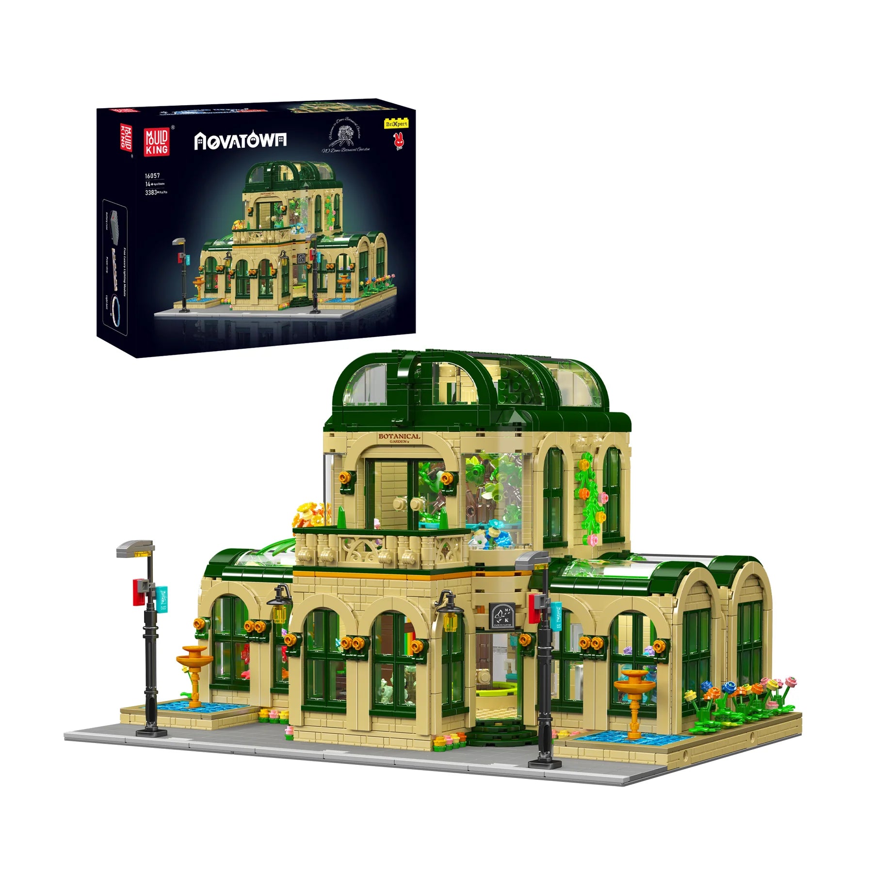 Discover architectural sophistication with the Mould King 1605 NovaTown Dome Botanical Garden, a masterfully engineered building set featuring over 3000 precision pieces. This sophisticated model showcases a striking domed structure with meticulous attention to detail—from functional opening doors and ornamental streetlamps to cascading fountains and an expansive terrace. The innovative modular construction includes a removable roof system, granting unrestricted access to intricately designed interior levels. Battery-powered LED illumination accentuates the botanical garden's lush environments and architectural elements, particularly effective in ambient lighting conditions. The comprehensive instruction guide facilitates seamless assembly, making this an exceptional choice for collectors and enthusiasts seeking a challenging, rewarding building experience that celebrates both structural design and natural aesthetics.