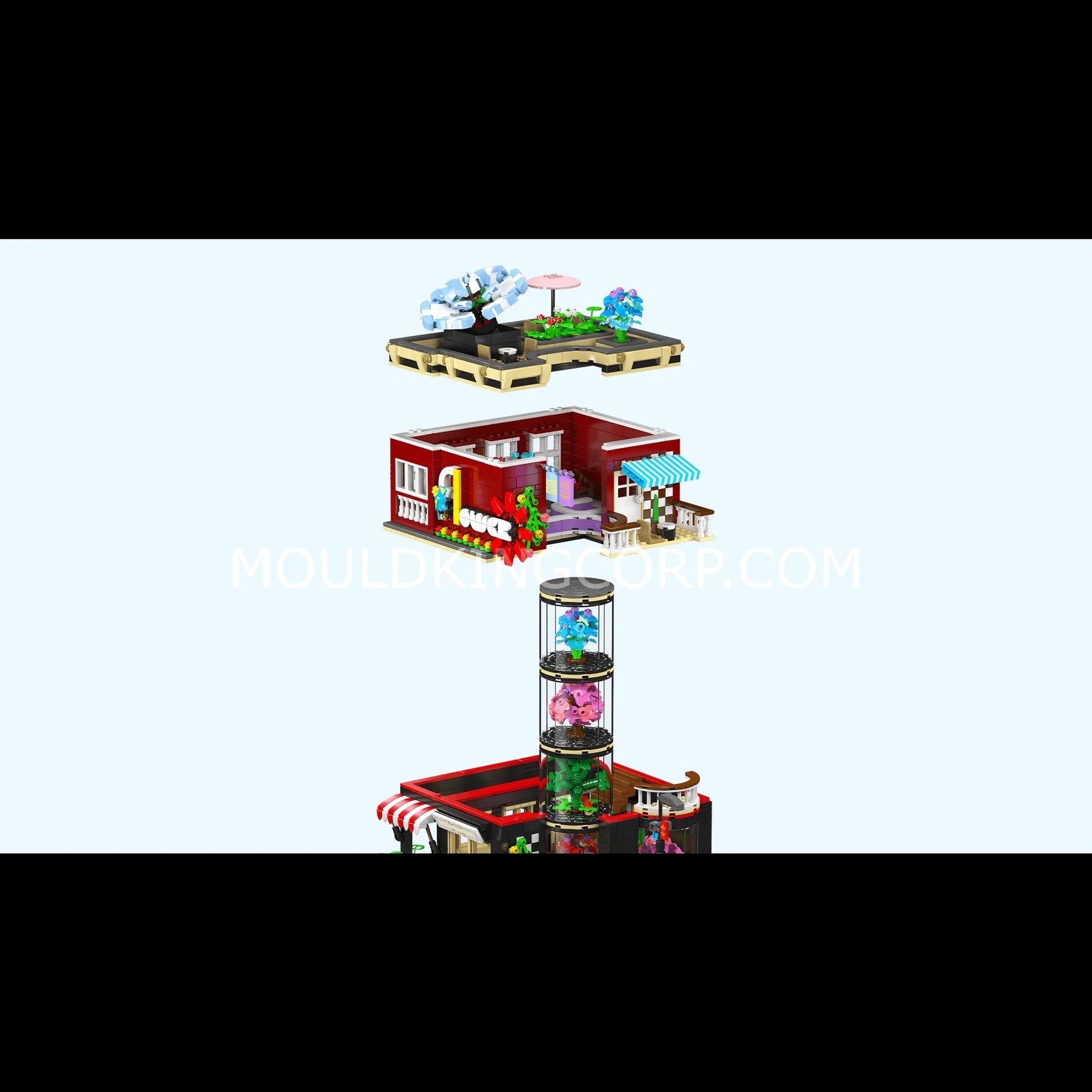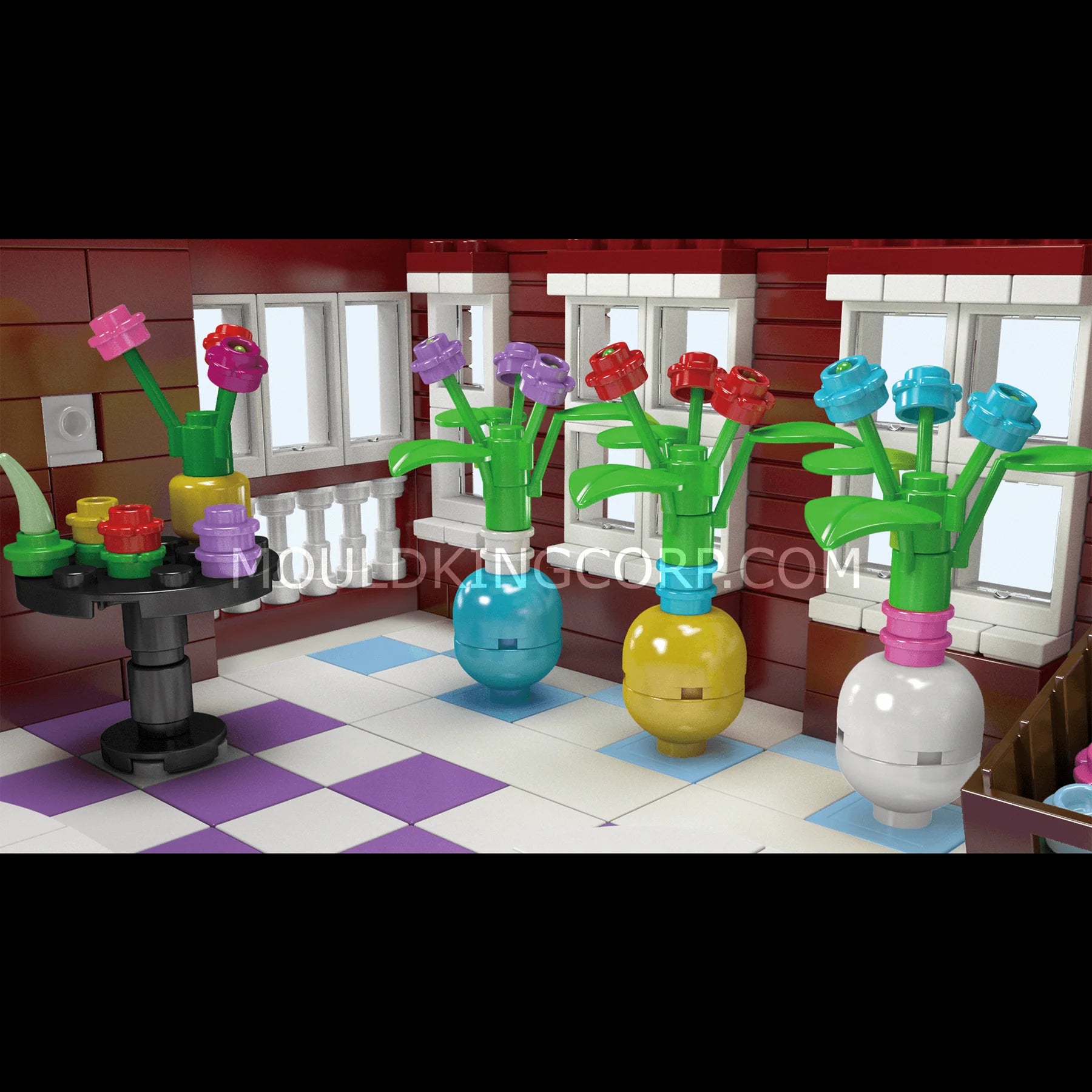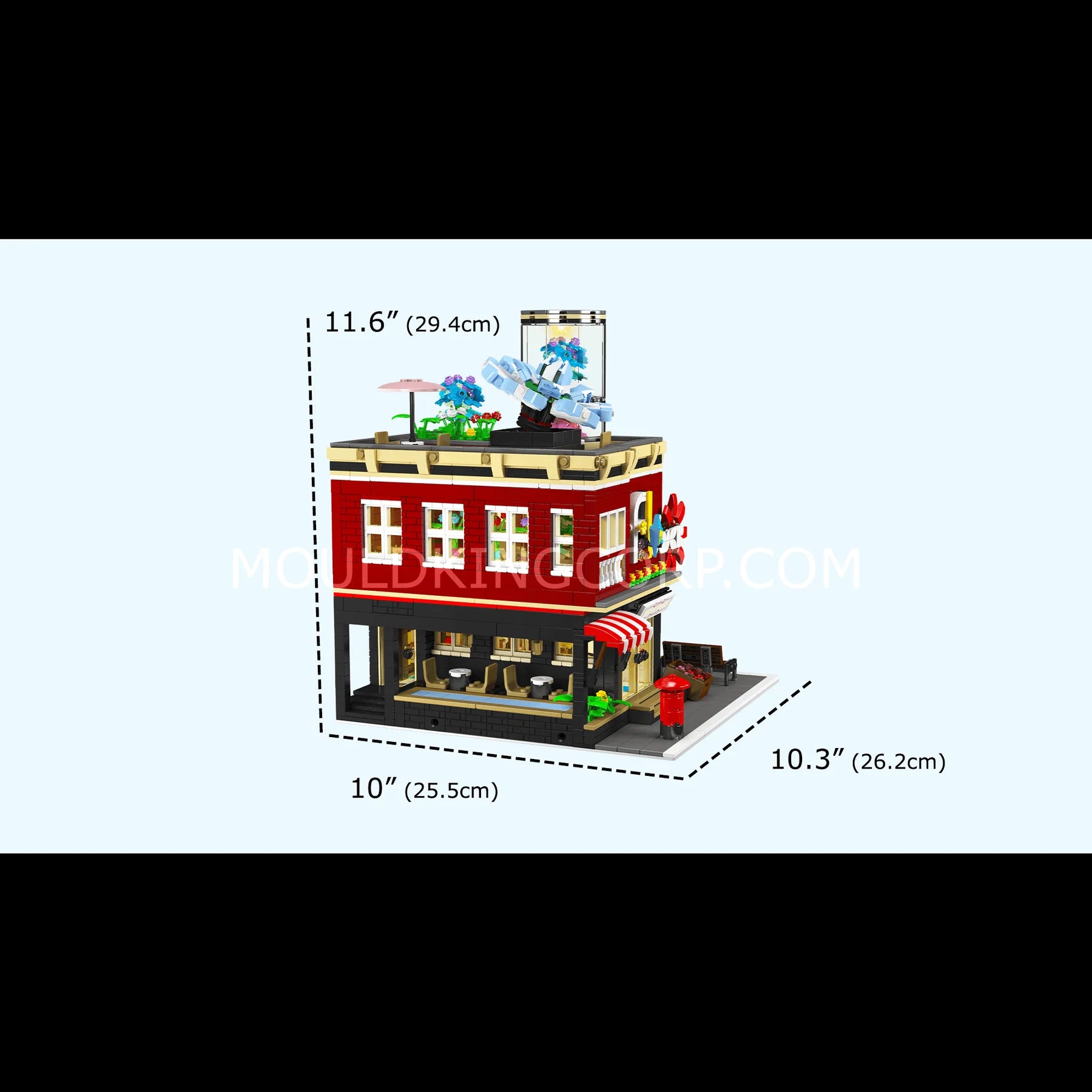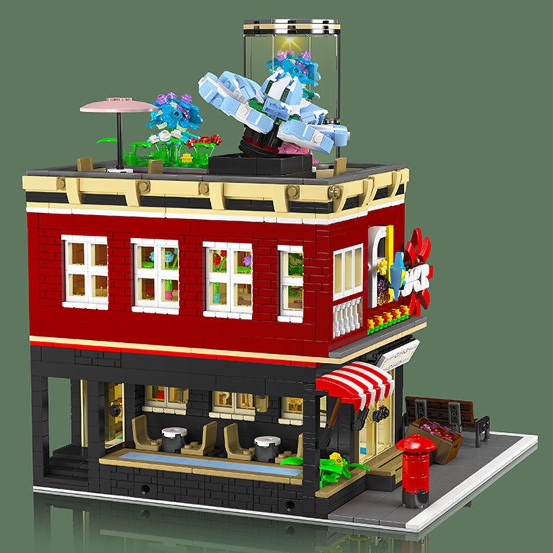 Mould King Street View 2,291 piece Street View Flower Shop MOC Building Block Set. Includes LED Lighting.