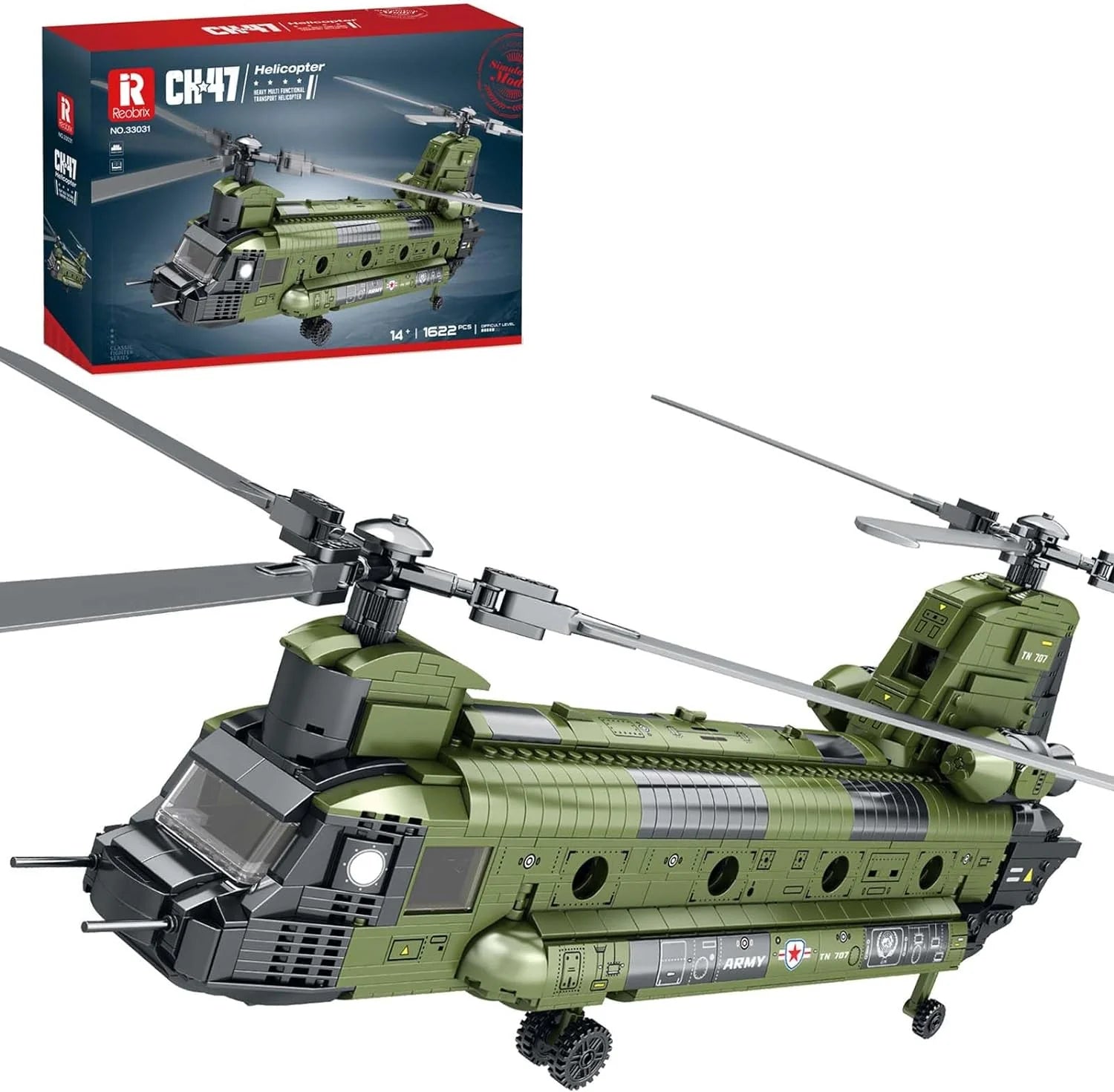 Reobrix 1622 piece CH-47 Military Helicopter Building Block Set.