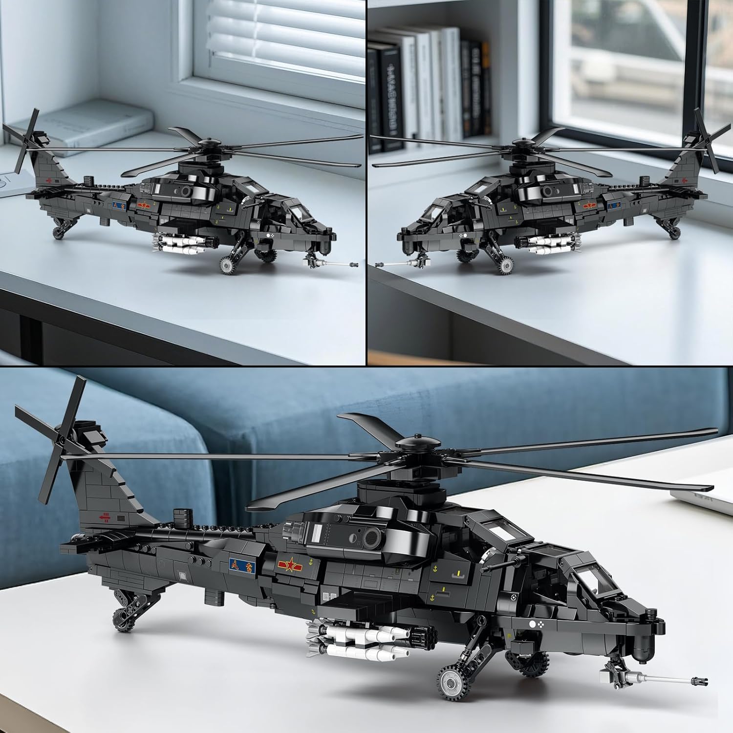 Reobrix 1366 piece WZ-10 Attack Helicopter Building Block Set.