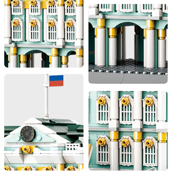 The Wange 5244 Winter Palace architectural set captures the grandeur of St. Petersburg's most iconic structure. This Baroque masterpiece, designed by Bartolomeo Rastrelli and completed in 1762, served as the official residence of Russian Tsars for nearly two centuries until the pivotal October Revolution of 1917. The model faithfully recreates the palace's elaborate architectural details and opulent design that defined Imperial Russia. Today, the Winter Palace stands as the centerpiece of the Hermitage Museum, one of the world's premier art institutions. This intricate building set offers collectors and history enthusiasts an engaging way to explore a landmark that shaped both Russian history and global cultural heritage.