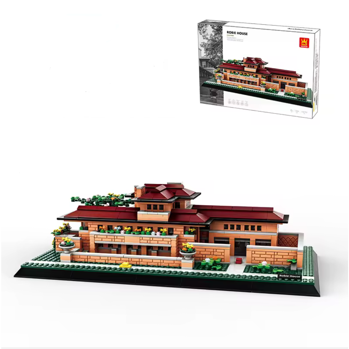 Wange 1182 piece MOC of The Robie House in Chicago, Illinois. Comes in the original manufacturer box with printed instructions.